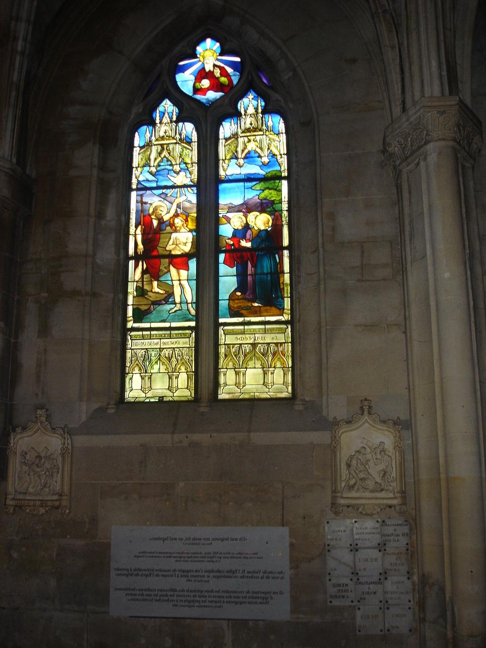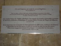 Aussi, pour rendre compte des avancées de l'oecuménisme et donner un autre message aux visiteurs de notre église, l'équipe pastorale de Notre-Dame des Vertus a décidé, avec l'autorisation des Monuments historiques, de faire poser une autre plaque, non loin de la plaque incriminée, et sous le vitrail du baptême de Jésus. Vous trouvez son texte ci-dessous.